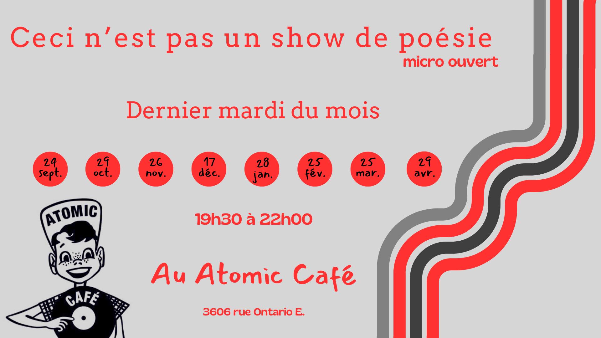26 mars à 19 h 30, micro ouvert Ceci n’est pas un show de poésie au Atomic Café